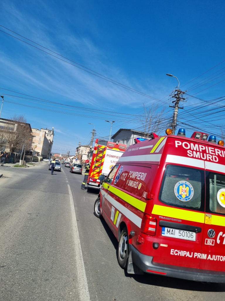 Intervin o autospecială de stingere cu apă și spumă, un echipaj de prim ajutor și o ambulanță SAJ cu medic.