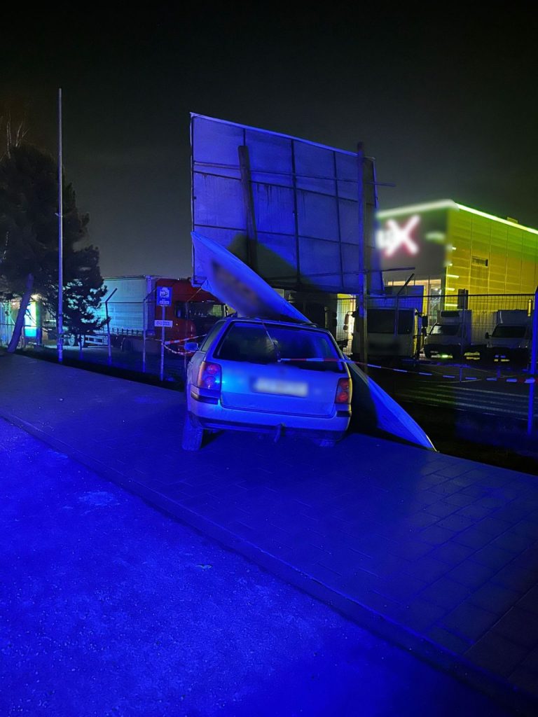 Beat criță la volan, cu mașina direct într-un panou publicitar