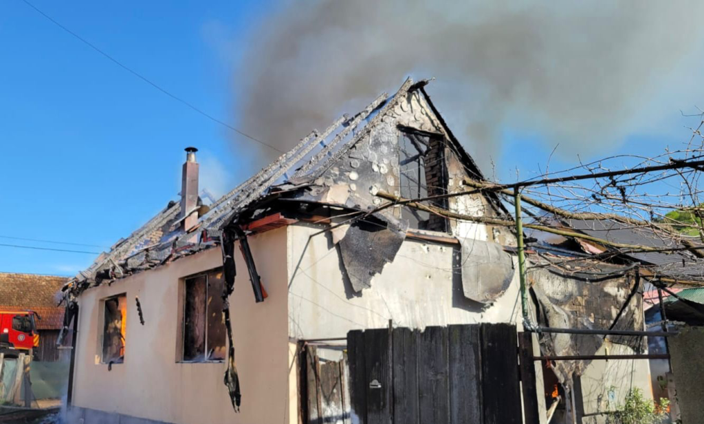 Incendiu la o casă din Moșna, Sibiu. Locuința a fost distrusă.