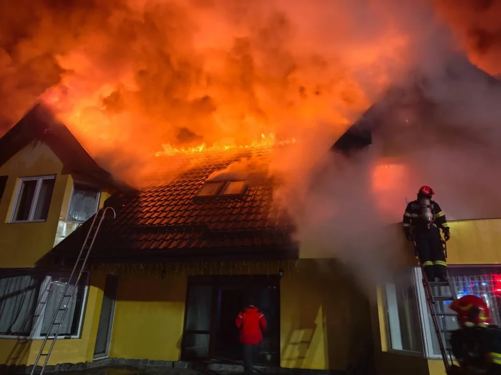 Pompierii din cadrul Detașamentului Târgu Mureș au fost solicitați să intervină în jurul orei 00:38, după ce flăcări au cuprins acoperișul unei clădiri.