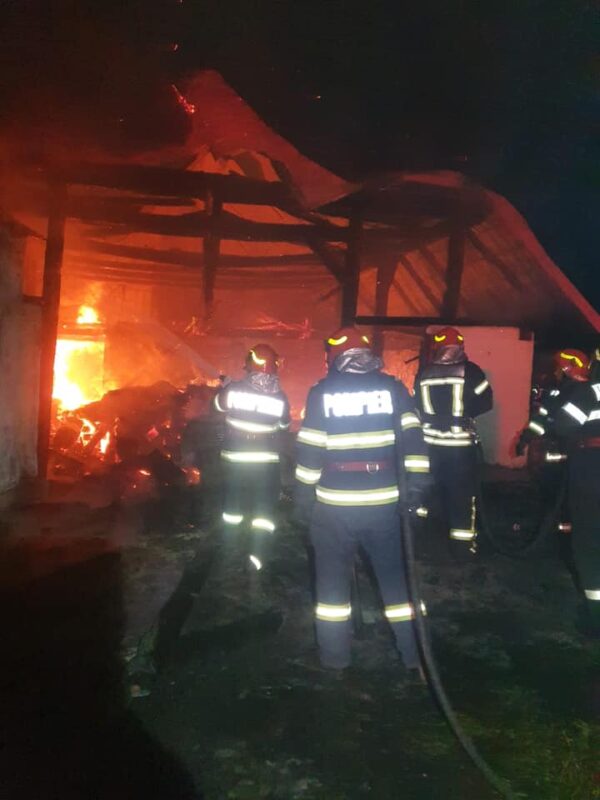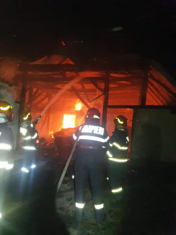 Flăcările au cuprins o anexă gospodărească în localitatea Roșiori, județul Satu Mare. Au intervenit nu mai puțin de 11 pompieri militari.