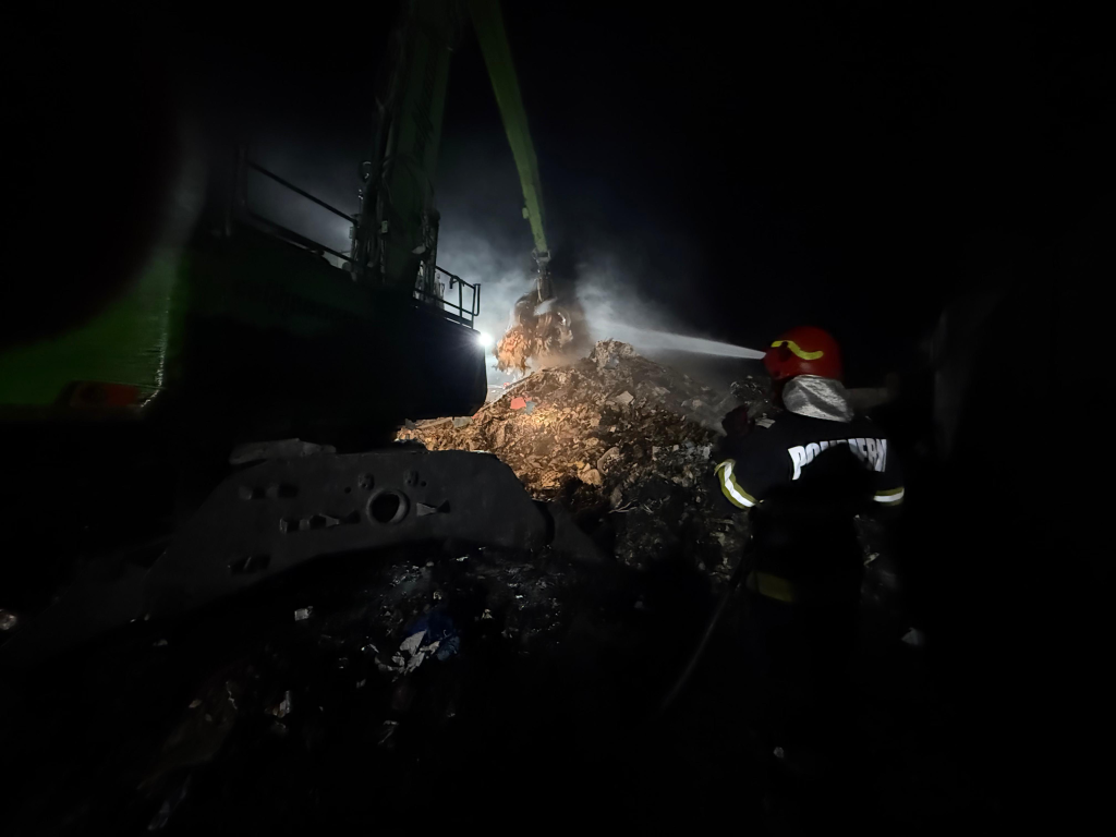 Incendiu la o platformă de deșeuri din Satu Mare, stins după două ore. 300 mc de materiale au ars, cauza fiind autoaprinderea.