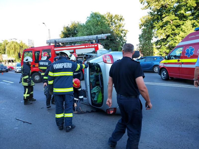 Un accident rutier s-a petrecut astăzi, 12 august pe raza municipiului Satu Mare. O mașină s-a răsturnat pe podul Decebal.