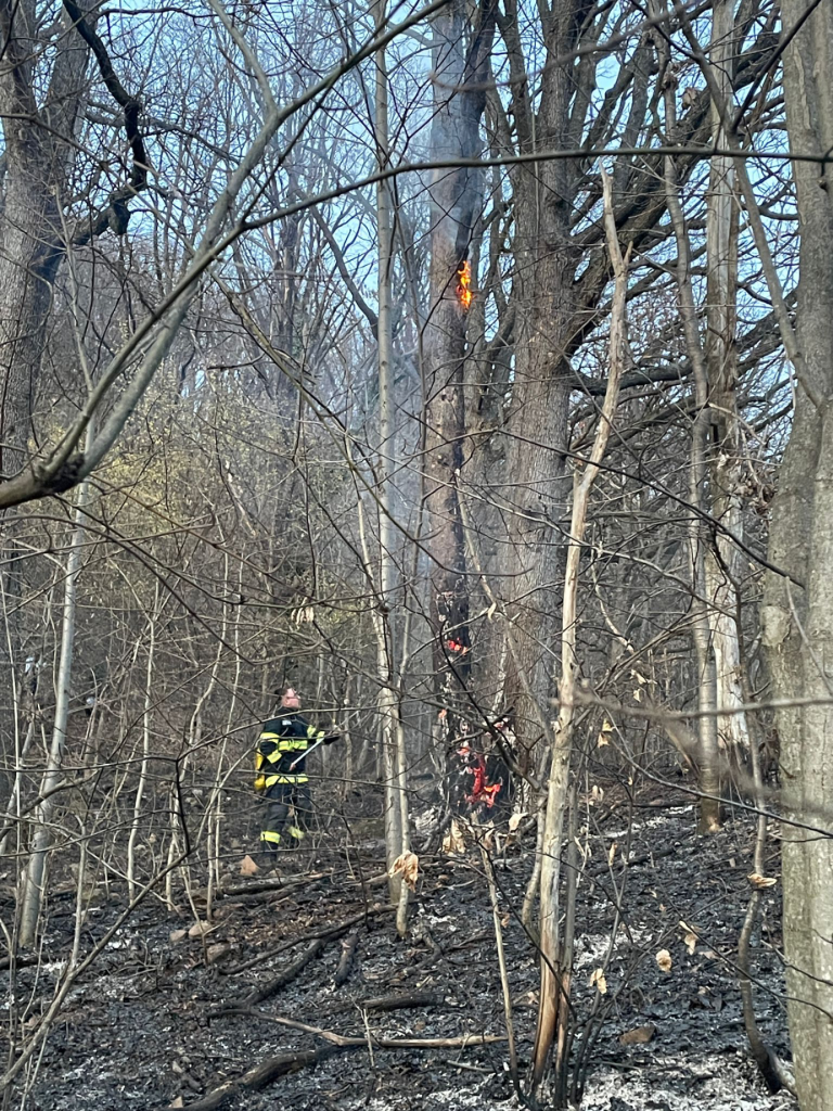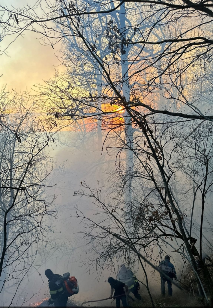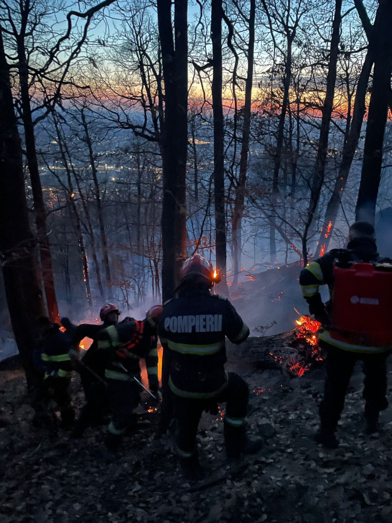 Pompierii din cadrul ISU Maramureș intervin pentru stingerea unui incendiu de vegetație uscată izbucnit în Baia Mare, în zona Vârful Iricău.