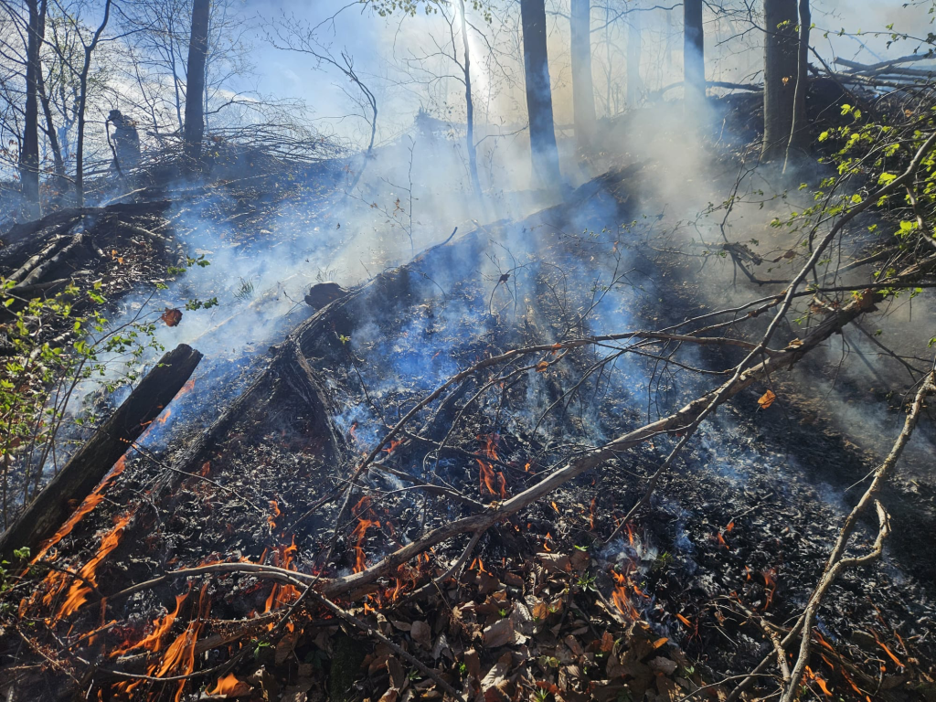 Operațiunea este de durată, însă, potrivit autorităților, nu există risc de propagare către locuințe sau alte bunuri.