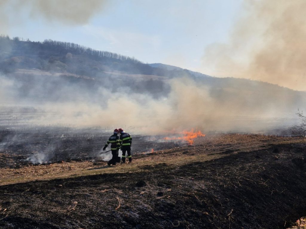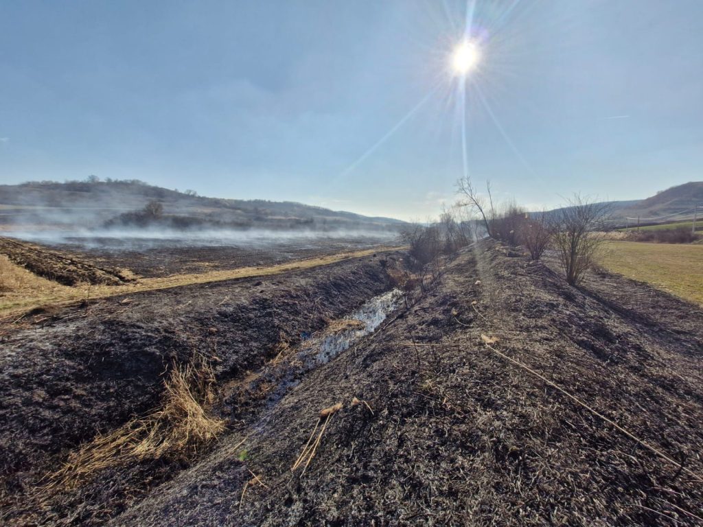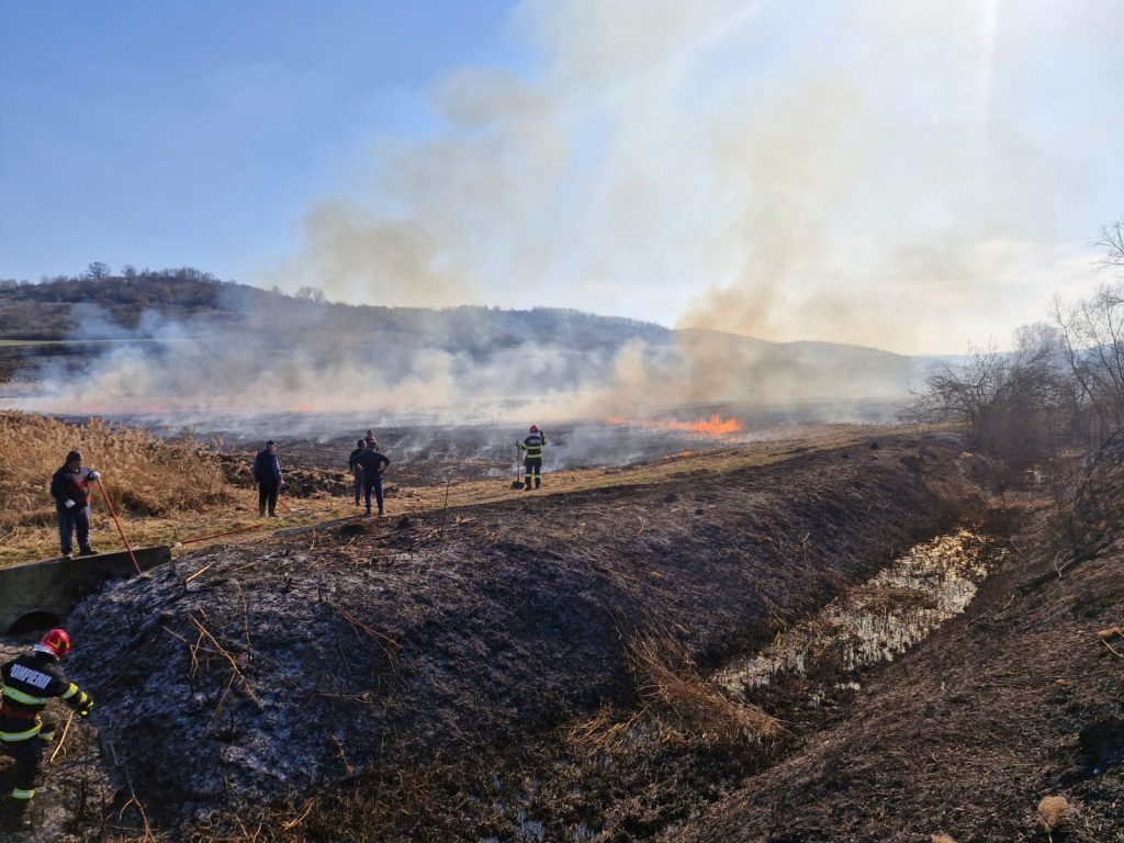 Incendiu de vegetație în zona „Două Veverițe” din Lăpușel. 4 autospeciale și voluntari au înăbușit flăcările