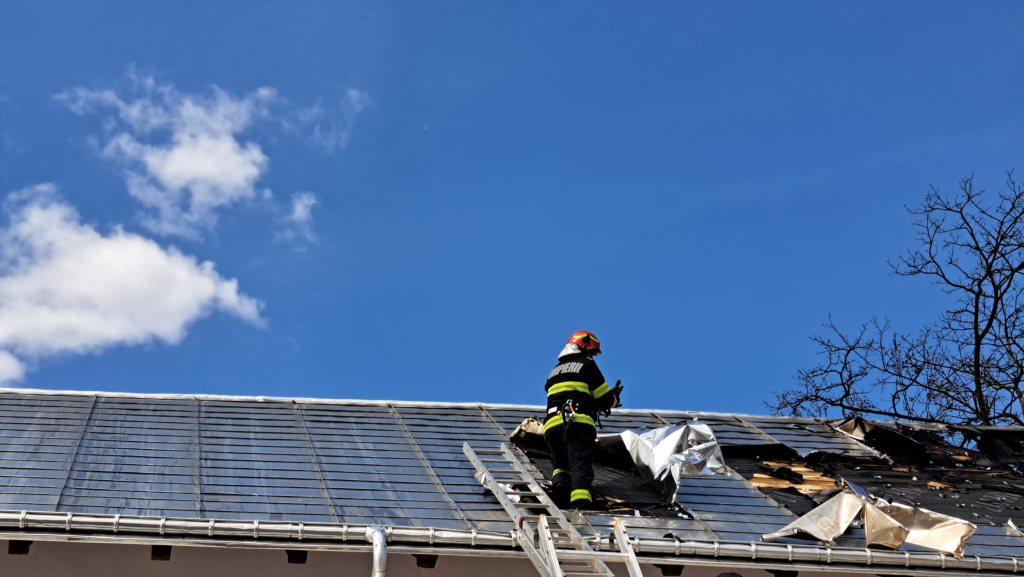 În continuare, echipajele intervin pentru decopertarea acoperișului în zona afectată, în vederea identificării și lichidării eventualelor focare ascunse. Din fericire, nu au fost înregistrate victime.