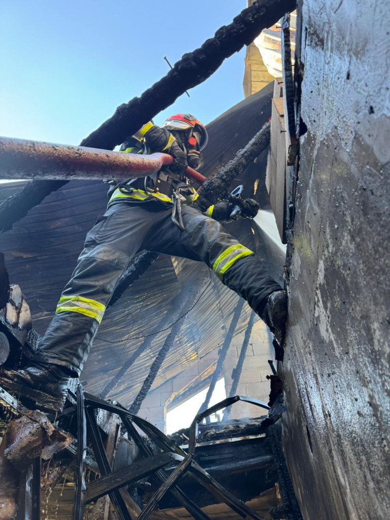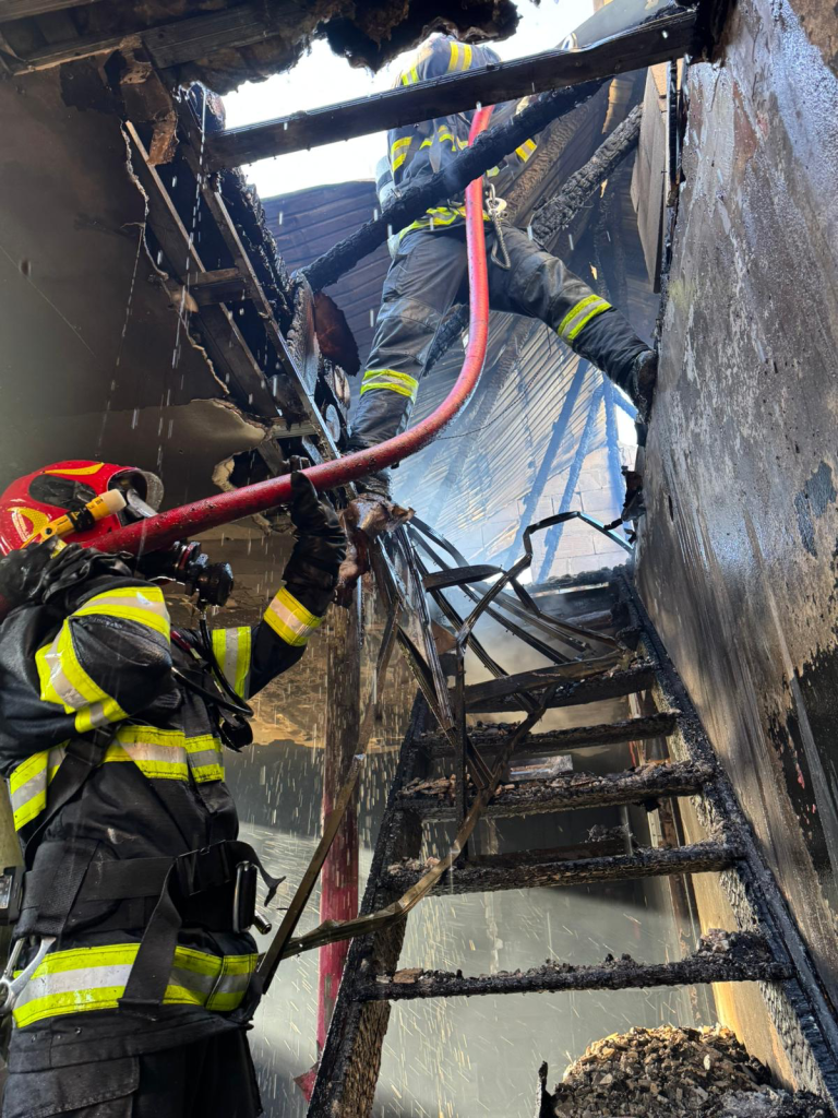 Incidentul a fost semnalat la o casă de locuit cu etaj, iar la fața locului au fost mobilizate trei autospeciale de stingere, un echipaj SMURD și o autospecială de intervenție și salvare de la înălțime.