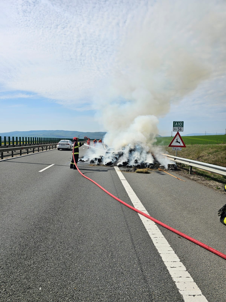 Un autocamion care transporta aproximativ 70 de baloți a fost cuprins de flăcări pe autostrada A10, sens Cluj–Alba. Nu au fost raportate victime.