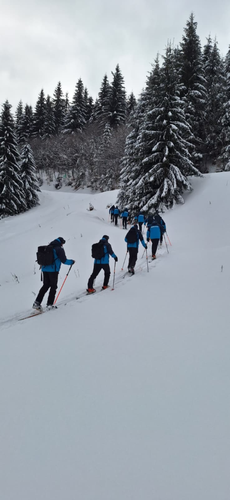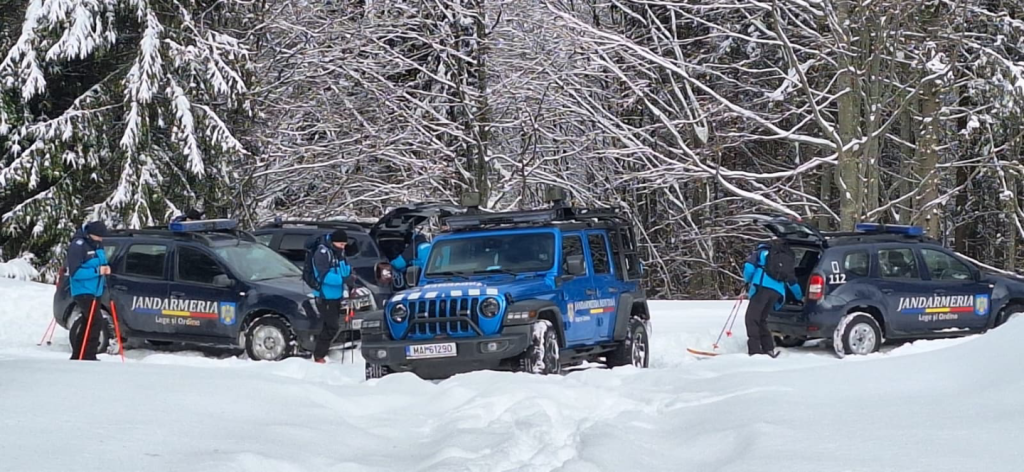 Jandarmii montani din județul Bistrița-Năsăud au desfășurat un antrenament comun în condiții de iarnă, în Masivul Căsar, pentru a-și testa rezistența și capacitatea de intervenție în teren dificil.