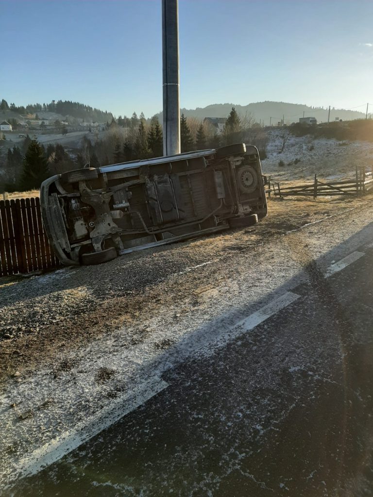 Din primele date, un microbuz condus de un tânăr de 28 de ani din Bistrița, în timp ce se deplasa pe direcția Bistrița către Vatra Dornei a părăsit partea carosabilă și s-a răsturnat. În urma evenimentului rutier atât șoferul cât și un pasager de 40 de ani din Bistrița au fost răniți necesitând acordarea de îngrijiri medicale de specialitate, menționează IPJ Bistrița-Năsăud.