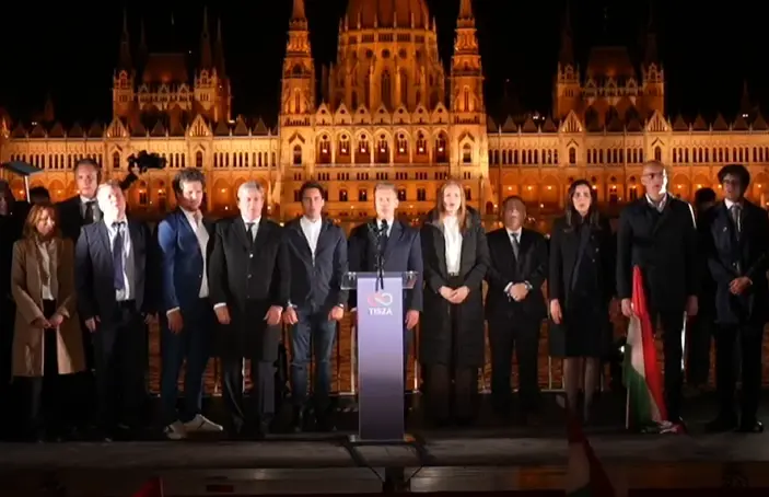 Magyar a continuat afirmând că rezultatul reprezintă o schimbare profundă: „Împreună, am eliberat Ungaria și am pus capăt regimului Orbán.” El a subliniat că victoria nu ar fi fost posibilă fără sprijinul cetățenilor. Discursul său a fost susținut în fața unei mulțimi numeroase, într-o atmosferă de entuziasm, susținătorii fluturând steaguri și aprinzând torțe.